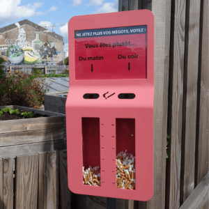 Ce cendrier innovant se distingue du cendrier classique parce qu’il applique le principe du NUDGE : Il incite les fumeurs à jeter leurs mégots…en jouant.